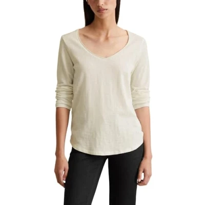 Marc OߴPolo Denim Women's Organic Cotton Long Sleeve Top with V neck, White (Silky White), M