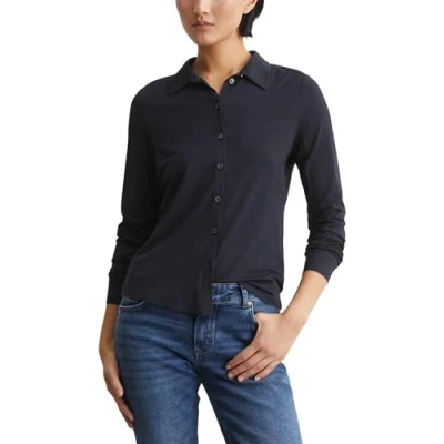 STYLISH KENT COLLAR: This jersey blouse blends classic elegance with a modern laidback silhouette. The stylish Kent collar and full button placket give this staple blouse a timeless feel. REGULAR FIT: The long, slim sleeves and the rounded hem create a flattering silhouette. This regular fit blouse is designed with plenty of stretch which allows you to move freely. STRETCH: Showcasing soft comfort and a sustainable fabric, this top is made from a premium blend of 94 percent certified viscose and 6 percent elastane. Machine washable at 30 °C. EASY TO STYLE: Paired with jeans and a classic trench or a skirt and boots, this basic blouse is a true style staple. It's perfect for casual chic looks or elegant outfits. MARC OߴPOLO: The international brand with Scandinavian roots epitomises premium fashion that blends individuality and authenticity. Natural fabrics and timeless designs allow you to embody your own personal style – the freedom to be yourself.