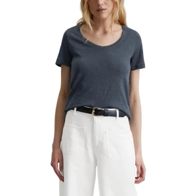 Marc OߴPolo Women's Organic Cotton T Shirt with V Neck, Blue (Muted Blue), M