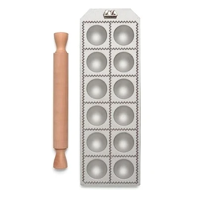RAVIOLI CUTTER: Ravioli maker for preparing 12 ravioli simultaneously. When rolling the fresh egg pasta dough, the ravioli filling is perfectly sealed. This prevents the filling from leaking during cooking. ROUND SHAPE: This accessory allows for the preparation of round-shaped ravioli with a diameter of 50 mm. Its design is optimized for filling them with the right amount of filling for a tasty and balanced dish. FOOD-GRADE ALUMINUM: This ravioli mold is made entirely of food-grade aluminum. The materials used are designed to be safe for health, even after numerous uses. INCLUDED ROLLING PIN: A practical rolling pin is already included in the package. It is made entirely of solid wood and is sturdy, compact, and durable over time. MADE IN ITALY: Marcato has always produced its products in Italy, employing sustainable manufacturing processes that respect the environment and health. The constant evolution of research, the use of cutting-edge technology, innovative materials, and attention to detail have given rise to a range of versatile, functional, and high-quality products.