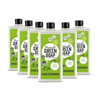 Marcel's Green Soap Dishwash Basil & Vetiver Grass Dishwashing Liquid 100% Eco friendly Vegan 97% Biodegradable 500 ML 6 Pack