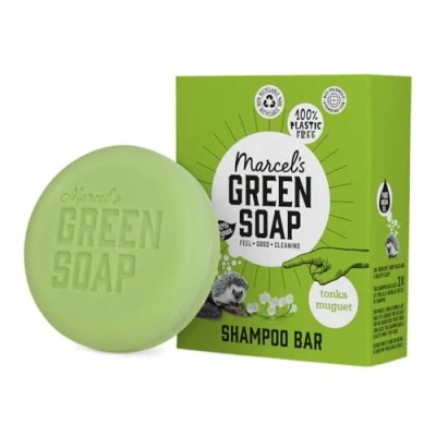 The Marcel's Green Soap Tonka & Muguet Shampoo Bar contains argan oil for shiny, nourished hair and a healthy scalp. This bar is perfect for when you prefer a compact version of Marcel's Green Soap Shampoo! Our Shampoo Bar comes in plastic-free packaging made of certified cardboard. Store this bar in a dry place, like a soap dish or saucer. Marcel's Green Soap Shampoo Bar is plastic-free, 97% biodegradable and palm oil-free. Besides being sulphate-free and microplastic-free, one Shampoo Bar lasts as long 3 bottles of liquid shampoo! The tonka bean is a sacred bean from South America, with a scent reminiscent of caramel and almonds. The fragrance is so intense, some say it can even cause hallucinations! Combined with the floral scent of muguet (the Lily of the Valley), this fragrance will make you daydream of a beautiful spring day! Marcel promises 3 things about his products: they smell wonderful, work fantastically and are plant-based. That's what we call ‘Feel Good Cleaning’!