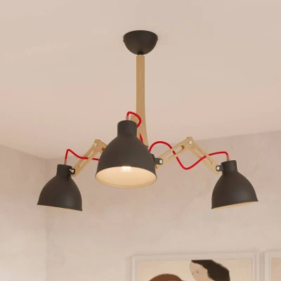 Skansen ceiling lamp: industrial design meets European craftsmanship The Skansen 3-bulb adjustable ceiling lamp in black combines industrial design with the warmth of wood and the robustness of metal. This combination of materials gives any room a unique atmosphere, whether in the living room, bedroom, hallway or dining room. The lamp is finished in an elegant black, complemented by light wood elements to create a stylish contrast. A special feature of the Skansen lamp is its adjustability, which allows it to be flexibly adapted to different lighting needs. The lamp is also dimmable when used with an external dimmer, allowing for individual lighting design. Made in Europe, the Skansen lamp stands for quality and careful workmanship that can be seen in every detail.