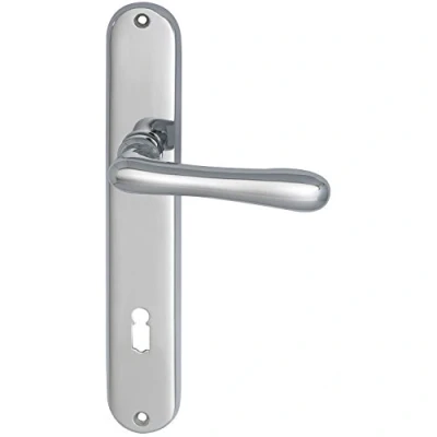 Elegant handle set made of robust and durable brass with chrome-plated surface The door handle provides a comfortable grip and allows for comfortable opening and closing of the door With innovative retaining spring for maximum comfort - even after years of use, the door handle is prevented from wearing out Square pin: 8 / 8.5 / 8 mm loose, class according to EN 1906: 3, fire protection: ÖNORM B3859, door thickness: 38 - 45 mm, holes: BB 90 Box contents: "Elegant 22" handle set - 2x door handle on sign BB 90, 1x square pin offset, wood screws, Weight: 1.91140781154 pounds, Manufacturer: MARCHESI