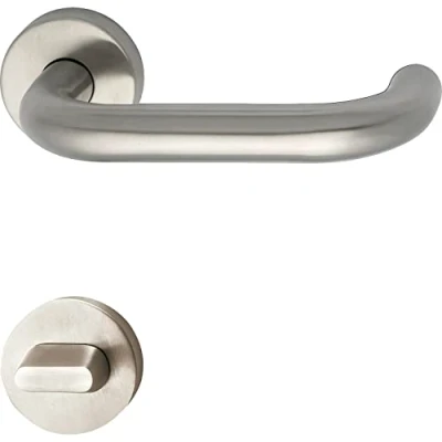 Modern handle set made of robust and durable stainless steel with a matte finish This handle set meets the highest safety standards in the object and fire protection / fire protection The door handle sits comfortably in the hand and allows comfortable opening and closing of the door Rosette toilet: diameter 52 x 9 mm, square pin: 8/8.5/8 mm loose, door thickness: 38 - 45 mm, design: firmly rotatable, retaining spring Box contents: "Harmonie" handle set – 2 x round door handles on rosette rosette, 1 x rotary latch, 1 x rosette toilet red/white, 1 x square pin, M5 threaded screws, matt stainless steel, Weight: 1.55646356972 Pounds, Manufacturer: MARCHESI