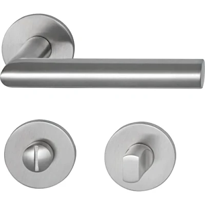 Modern handle set made of robust and durable stainless steel with a matte finish With innovative retaining spring for maximum comfort - even after years of use, the door handle is prevented from wearing out The door handle sits comfortably in the hand and allows comfortable opening and closing of the door Rosette toilet: diameter 51.5 x 4 mm, square pin: 8 loose to 8.5 mm with A-sleeve, door thickness: 38 - 45 mm, design: firmly rotatable, retaining spring, support cams: diameter 7 x 12 mm Box contents: mitre handle set – 2 x door handle on flat rosette round, 1 x rotary latch – flat rosette toilet, 1 x square pin, threaded screws M4, stainless steel black matt, Weight: 1.36025215654 pounds, Manufacturer: MARCHESI