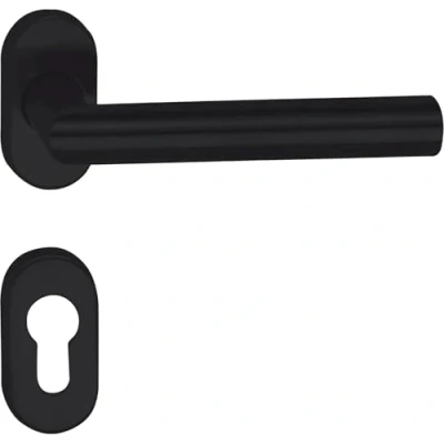 MARCHESI Riga 1420 2620AC 2627AC 253 Handle Set on Oval Rosette PZ, Stainless Steel Matte Black, Silver