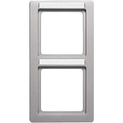Technical data: main design line Berker Q 1 colour aluminium velvet lacquered. Technical design double vertical. Material Duroplast for vertical mounting, clamp attachment, shatterproof, halogen-free. Labelling field height for P-touch tape 6 mm Product type: frame with labelling field, colour aluminium with lacquered, product type, frame series Q 1 vertical, double vertical, Manufacturer: Berker