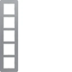 Technical data: main design line Berker Q 7 colour aluminium blasted technical design 5-fold material aluminium for the use of central piece shatter-proof halogen-free for vertical and horizontal mounting product type: standard frame colour: aluminium blasted product type: frame series Q 7 version, 5-fold, Manufacturer: Berker