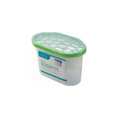 General description These interior dehumidifier units are designed to effectively eliminate moisture, dampness, condensation, and humidity in various spaces such as closets, bathrooms, laundry rooms, basements, garages, boats, offices, cars, and warehouses. They help protect items and fabrics from the damaging effects of mold and moisture while maintaining a safe humidity level that will not harm plants, furniture, or other household items. The vanilla-scented dehumidifier not only absorbs excess moisture but also removes unpleasant odors, leaving a light, pleasant fragrance in its place. Technical specifications Capacity: 500ml Duration: Lasts up to 60 days depending on temperature and conditions Usage 1. Remove the plastic wrap around the unit. 2. Remove the plastic cap, then take off the aluminum sheet (do not remove the white sheet beneath the aluminum). 3. Replace the plastic cap after removing the aluminum protective sheet. 4. Place the dehumidifier unit in any desired location