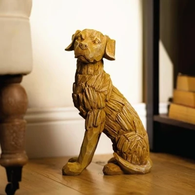 Marco Paul Driftwood Style Resin Animal Free Standing Ornament Shabby Chic Rustic Home Decoration Wood Effect Indoor Dog Labrador Sculpture Figurine Birthday Gifts For Men and Women (Labrador Statue)