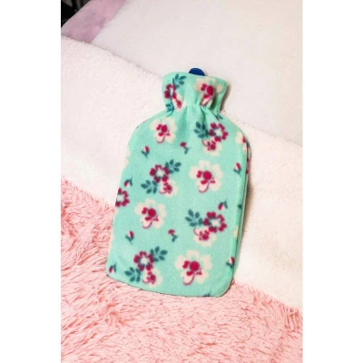 Marco Paul Hot Water Bottle 1.8 Litre Bag with Cover Winter Warmer Faux Fur Back Pain Relief Neck Chronic Period Durable Leakproof (Flowers)