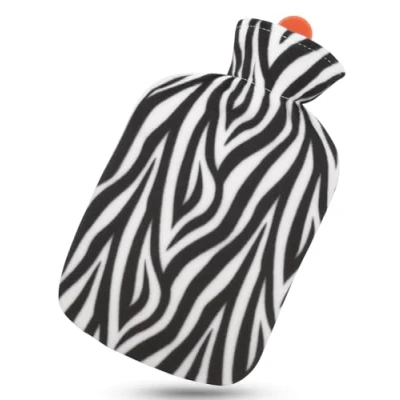 Marco Paul Hot Water Bottle 1.8 Litre Bag with Cover Winter Warmer Faux Fur Back Pain Relief Neck Chronic Period Durable Leakproof Safe (Zebra)
