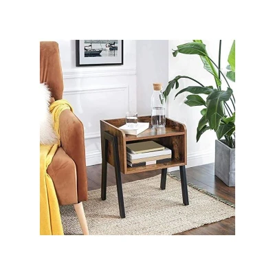 General description Striking, stylish, and highly practical, this Rustic Mahogany Side Table with Storage Compartment is the ideal piece of accent furniture for any room in the home. Functional and spacious, it complements both modern and traditional décor, making it an invaluable addition to your living space. With a classic design featuring sturdy black steel legs and a rustic wood finish, this side table is both a standout piece and a versatile option for various styles. Technical specifications Colour: Mahogany Dimensions: 58.5 x 41 x 11.5 cm approx. Installation Basic assembly required Full fixtures, instructions, and fittings included Usage Perfect for use as a bedside table for storing books, lamps, and water glasses Can be placed in a hallway for keeping keys or incoming mail handy Suitable for use in the bathroom or living room for minimal and handy storage