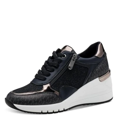 FEEL ME: The comfortable wedge sneakers feature the softly cushioned Feel Me sole. Its technology ensures optimal wearing comfort and the feeling of walking on clouds. SOFT LINING: Thanks to the innovative lining technology, every step becomes an experience of high wearing comfort. The inner lining not only provides a pleasant feeling but also conveys a lightness with every step. REMOVABLE FOOTBED: With the removable footbeds, shoe comfort can be easily optimized. The exchangeable insole allows you to replace it with orthopedic insoles, fresh insoles, or warm insoles as needed. HIGH-QUALITY MATERIAL: The wedge sneakers are made from a mix of textile and synthetic materials, providing both comfort and durability. MARCO TOZZI: The brand scores particularly with exquisite design inspired by Italian style, characterized by elegance. High wearing comfort, top quality, and fashionable variety are paramount at MARCO TOZZI and are reflected in every single shoe.