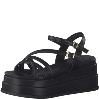 MARCO TOZZI Women' 2 88306 20 Wedge Sandal, Black, 6 UK