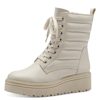 MARCO TOZZI Women's 2 25242 41 Lace Boot Flat, Cream Comb, 6.5