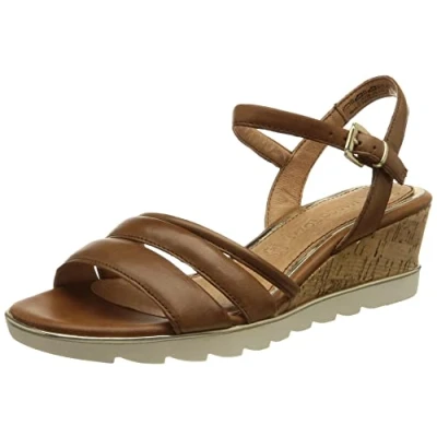 Marco Tozzi women's 2 28724 28 Damen Leder Sandalette Wedge Sandal, Cognac, 5.5 UK