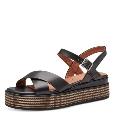 MARCO TOZZI Women's 2 28769 42 Wedge Sandal, Black, 6.5
