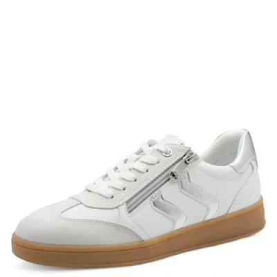 MARCO TOZZI Women's Flat Trainers with Laces Leisure, White Silver, 4 UK
