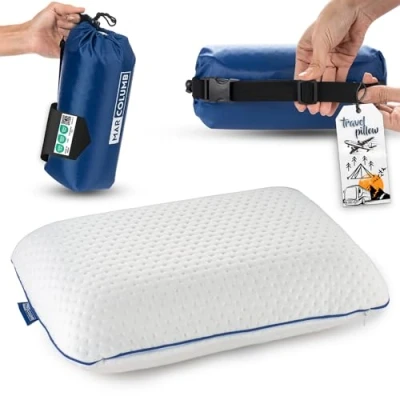 Marcolumb Travel & Camping Comfortable Memory Foam Pillow Easy to Carry Portable Bag Temperature Regulating Case Perfect for Travelling
