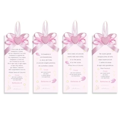 Mareli A10R SL Kit of 4 Bookmarks for Wedding Favours Place Cards Baptism, Pink Christening