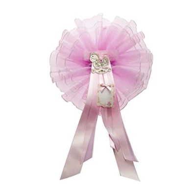 Pink baby bow with ceramic rocking horse and scroll Packaged in a gift box Made entirely in Italy with Italian materials. Material: tulle, satin, ceramic rocking horse Hanging with a satin hook