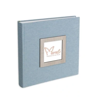 Photo album cover format 31 x 31 cm with 40 sheets (80 pages) in white cardboard FAVINI very thick and resistant, the pages are interspersed with vegetable parchment to prevent photos from sticking together. On the cover is applied a wooden photo frame cm14x14, photo space measures 10x10 cm; the photo is inserted from the top of the frame; to make the object safe, we preferred to replace the glass with a transparent PVC sheet to protect the photo. Useful space for gluing photos 29.3 x 29.8 cm: can hold 320 photos 10x15 or 160 photos 13x18; to be glued with glue or double-sided adhesive (not supplied). Cover covered with a high-quality linen fabric in light blue. Made entirely in Italy with Italian materials; Suitable for scrapbooking, possibility to write notes and captions on pages.