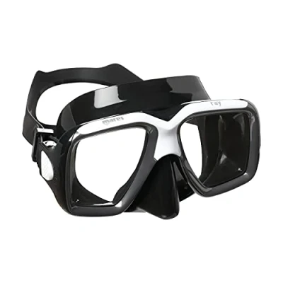 Amazon Ergonomic two-lens mask made of silicone Two slightly angled lenses for good visibility Integrated buckles on the frame Ideal for long wearing times Bi-silicone strap in X shape