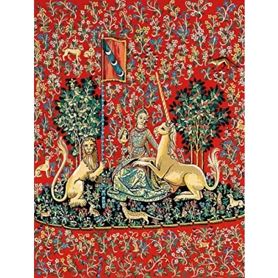 Margot de Paris Dame à la Licorne, “l’Ouïe Printed Tapestry Canvas, Multi Colour, 0.6
