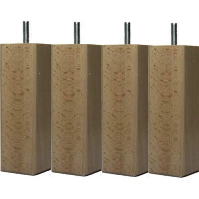 Set of 4 Natural Wood Legs Fixing/Assembly: Screw-on, comes in standard M8 x 26 mm screw mounting (suitable for most box bases) Material: solid wood (French PEFC certified beech). Dimensions: height 17 cm, diameter 60 mm MANUFACTURING: 100% French