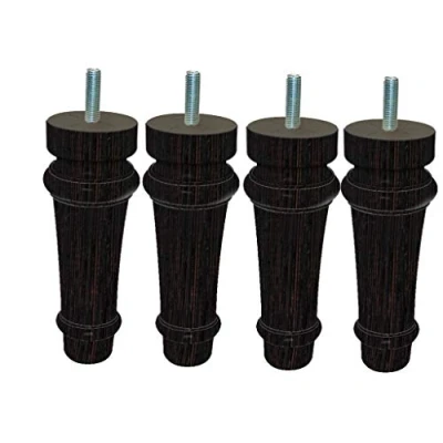 Set of 4 Natural Wood Legs Wengué Fixing/Assembly: Screw-on, comes in standard M8 x 26mm screw mounting (suitable for most box bases) Material: solid wood (French PEFC certified beech). Dimensions: height 15 cm, diameter 55 mm MANUFACTURING: 100% French