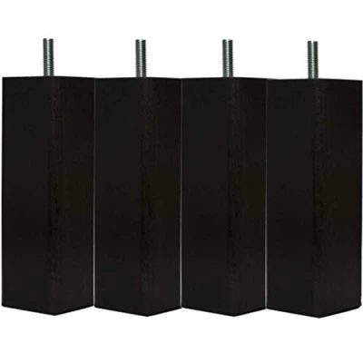 Set of 4 natural wood feet dyed black Fixing/assembly: screw on, supplied in standard screw mounting of M8 x 26mm (fits most box spring beds) Material: solid wood (French beech PEFC certified). Dimensions: height 17 cm, diameter 60 mm Made in France