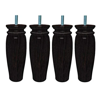 Set of 4 Natural Wood Legs Wengué Fixing/Assembly: Screw-on, comes in standard M8 x 26mm screw mounting (suitable for most box bases) Material: solid wood (French PEFC certified beech). Dimensions: height 15 cm, diameter 55 mm MANUFACTURING: 100% French