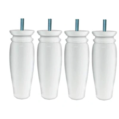 Set of 4 White Stained Wood Legs Fixing/Assembly: Screw-on, comes in standard M8 x 26 mm screw mounting (suitable for most box bases) Material: solid wood (French PEFC certified beech). Dimensions: height 15 cm, diameter 55 mm MANUFACTURING: 100% French