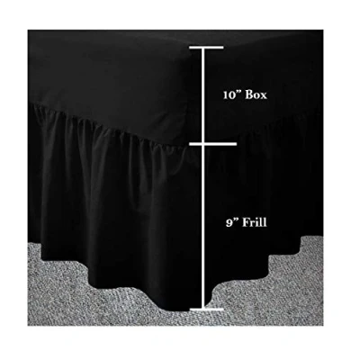 Maria Luxury Bedding & Linen Black Double Fitted Valance Sheet, Frilled Sheet Fits Over Mattress