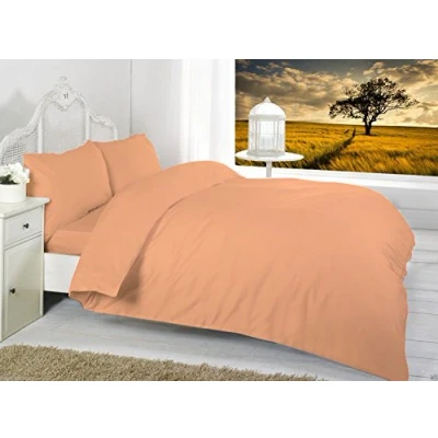 Maria Luxury Bedding & Linen Plain Dyed Bed Set Duvet Cover with 2 Matching Pillowcases (Peach, Single)
