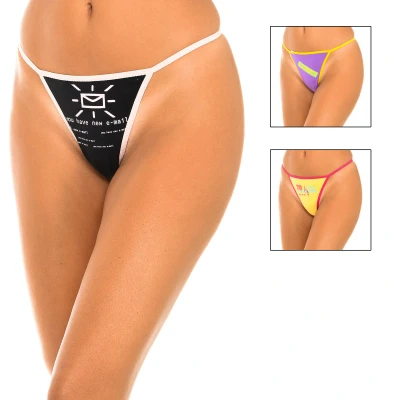 Pack-3 Thongs Marie Claire. Color Pink-lilac-yellow Funny drawings, prints. Comfortable and lightweight fabric. Matching seams. Composition: -95% Cotton - 5% Elastane Care: - Wash at max. 35º. - Do not use bleach. - Do not use dryer. - Do not iron. - Do not dry clean. Composition: 95% Cotton, 5% Elastane Care: - Wash at max temperature. 35º. - Do not use bleach. - Do not use dryer. - Do not iron. - Do not dry clean.