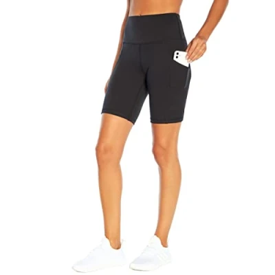 High waist short with 4" curved tummy control waistband and lined powermesh for added support and slimming compression. Fitted short for a compressed flattering silhouette. Inseam: 9 inches Sport Type: Exercise & Fitness Weave Type: Knit