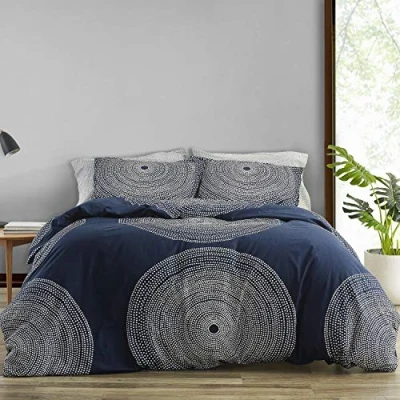 MARIMEKKO Duvet Cover Set Smooth Cotton Percale Bedding with Matching Sham, Lightweight Home Decor,3pcs, King, Fokus Navy