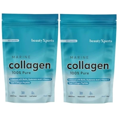 HIGH STRENGTH MARINE COLLAGEN: Collagen is the most abundant protein in the human body, it is present in the bones, muscles, skin, and tendons. As we age, natural production starts to slow, making Collagen Supplements very popular. WITH BIOTIN, HYALURONIC ACID & VITAMIN C: Each serving (2 capsules daily) contains 1000mg Of Marine Collagen, 100mg Of Hyaluronic Acid, 80mg Of Vitamin C, 150mcg Of Biotin. Collagen helps our body to maintain skin elasticity and firmness. Biotin can help contribute to the maintenance of normal skin & hair while hyaluronic Acid A natural substance in the body which aids hydration. Vitamin C also contributes to normal collagen formation for the normal function of the skin. SUPPLEMENTS FOR MEN & WOMEN: Suitable supplements for women and men. Our complex of Marine Collagen, Hyaluronic Acid, Biotin and Vitamin C are designed to help give your body and skin a boost. Easy swallow and fast absorbing capsules - 7.6mm x 21.6mm. TYPE 1 HYDROLYSED COLLAGEN PEPTIDES: High Quality & Strength marine collagen complex ideal to help you with your health and wellness goals. Unflavoured supplements from our high-quality fish-based collagen gives you the strength you want without the unpleasant taste. MADE IN THE UK: Researched, tested and produced here in FDA & ISO certified UK labs. Our formulas are Gluten free, Soy Free, Dairy free and GMO Free. 60 Capsules (not tablets or powder) gives you a month supply. Fully recyclable and letter box friendly packaging. Never miss a delivery again!