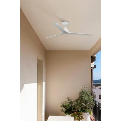 General description This MARINE white ceiling fan is designed for outdoor use, making it ideal for ventilating spaces ranging from 13 m² to 17.6 m². It features a sleek design with a white housing and blades, ensuring it blends seamlessly into any decor. Technical specifications Voltage: 220-240 V ~ 50/60 Hz Diameter: 125 cm / 49" Housing colour: white Blade colour: white Motor wattage: 4 / 6.3 / 9.2 / 14.7 / 20.1 / 27.9 W Revolutions per minute: 86 / 121 / 146 / 175 / 198 / 222 Max. airflow: 174.3 m³/min / 6155 CFM Ceiling to blades: 22.1 cm / 8.7" Overall drop: 24.5 cm / 9.6" Diameter canopy: 13 cm / 5.1" Max. ceiling slope: 12° Weight: 3.2 kg / 7.1 lbs IP Rating: IP44 Compatibility and accessories Includes remote control with 6 fan speeds, off, running direction, timer, and natural breeze function. Installation Suitable for inclining roofs. Usage Features forward and reverse function for summer and winter modes. Other information Anticorrosive treatment of metal parts.