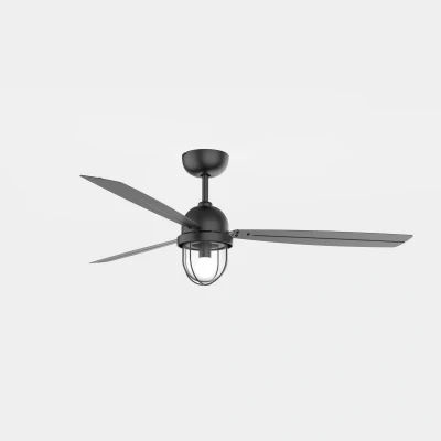 The Mariner Ceiling Fan with Light is an elegant blend of style and functionality, making it an exceptional addition to any modern home. Designed with an industrial-chic aesthetic, this ceiling fan features a striking black finish that seamlessly integrates with a variety of interior decors. The fan is crafted from high-quality steel, ensuring durability and a long lifespan, while the transparent glass accents provide a contemporary touch.