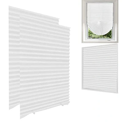Premium Non-Woven Fabric:The no drill temporary blinds are made of non-woven material - breathable and Lightweight.It blocks most of the Sun Lights Shades, UV rays and harmful dust providing a comfortable Light Filtering and Privacy Protection environment for the family. Better shade and durability than paper blinds and Easy to install than normal curtains.Ideal for renters or homeowners who want blinds quickly without making alterations to windows. Convenient and Safety Design: Each 1 Pleated window blinds give away 2 clips(Clip on Blinds), you can easily freely control the shape of the pleated blinds and the shading of the room. a clean and atmospheric look - no beads, no curtain lines, window blinds no drilling. Easy Stick on Blinds Size: Self Adhesive Perfict Fit Blinds 4 Sizes for you to Choose:60*150cm/60*180cm/90*150cm/90*180cm. According your windows Choose the suitable size,and you can easily cut the blinds width or adjust the height. It's suitable for windows of various sizes in Door Windows Bedroom Kitchen Bathroom Blinds. Easy to Cut and Install:No Drill Instant Stick on blinds are installed in just 3 steps - cutting, tearing and pasting. It can save a lot of complicated installation tools such as drill bits.At the same time, it achieves no holes, no fixed, no trouble,and easy to disassemble. Installation Steps :1. Wipe window or door frames 2. Measure the window, cut the blinds to required size 3. Peel the double tape on back of the blind, paste to window frame, done!