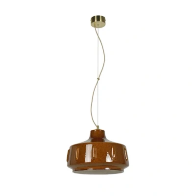 MARKET SET Jimmy hanging light – elegance meets high-quality materials for stylish interior design The MARKET SET Jimmy hanging light combines timeless design with a harmonious combination of ceramic and metal materials. The warm brown and brass colour scheme gives the light an elegant look that can be perfectly integrated into various living areas such as the living room, dining room, kitchen or hallway. With a diameter of 38 cm, it adds a stylish accent and becomes an eye-catching feature in any room. Thanks to the option of controlling the lamp via an external dimmer, the light intensity can be individually adjusted to create a pleasant atmosphere. The high-quality workmanship and sophisticated design make this hanging light the ideal choice for anyone who values aesthetics and functionality.