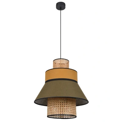 Lamp MastersMARKET SET Singapour ML hanging light – Design meets natural materials for stylish living spaces The MARKET SET Singapour ML hanging light combines high-quality materials such as textile, rattan and metal to create a harmonious overall concept. The colour combination of light wood, khaki and curry gives the light a warm yet modern look. With its sophisticated design, it is an eye-catching feature in the living room, dining room or bedroom and blends seamlessly into various interior styles. A particular highlight is the elegant textile cable, which emphasises the high-quality workmanship. The lamp is dimmable when used with an external dimmer, allowing you to flexibly adjust the lighting mood. Manufactured in Europe, the hanging light impresses with its quality and timeless aesthetics – ideal for sophisticated interior design concepts.