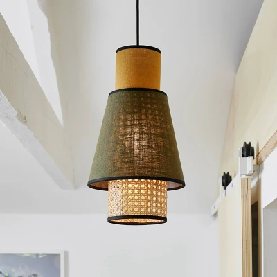 Lights.coSingapour XS pendant light with fascinating lighting effect This pendant light is something very special: its unusual design comes from MARKET SET, a label under which the manufacturer Corep SAS markets innovative designs by young, up-and-coming designers, with a new collection every year. The special feature of Singapour XS is the lampshade, or more precisely, the combination of two linen lampshades of different sizes and a conical rattan lampshade sitting under the lower fabric lampshade. As the light is emitted, the weave under the fabric stands out clearly. A pendant light that is ideal for atmospheric lighting above a table, for example, or for basic lighting in living rooms and bedrooms. Fitted with a textile cable. - Externally dimmable