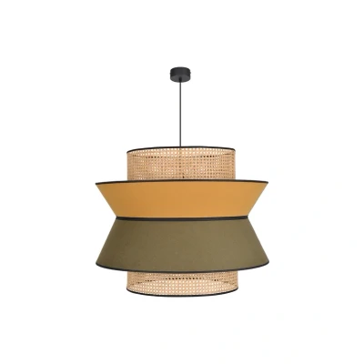 Lamp MastersMARKET SET Singapour XXL pendant light – design meets natural materials for stylish interior design The MARKET SET Singapour XXL pendant light combines timeless design with high-quality materials such as textile, rattan and metal. The harmonious colour combination of khaki, curry, light wood and black creates a warm and inviting ambience. With its generous shade design, it becomes an eye-catcher in living rooms, dining rooms or bedrooms and adds stylish accents to any environment. Manufactured in Europe, the pendant light impresses not only with its aesthetics but also with its functionality. The option of controlling it via an external dimmer allows for flexible adjustment of the lighting mood. The integrated textile cable emphasises the high-quality character of the light and fits seamlessly into the well-thought-out design concept.