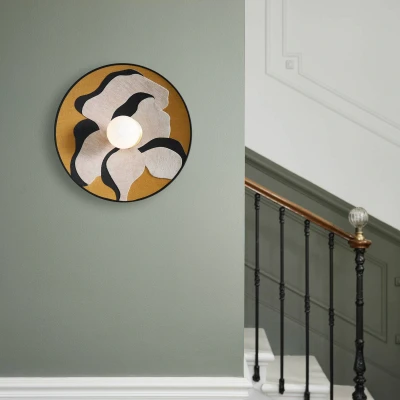 Sonia Laudet round wall light with decorative patterned fabric shade Even when switched off, this wall light is an eye-catching feature in any room thanks to the decorative pattern on the fabric shade that surrounds the sandblasted metal socket. As soon as the light is switched on, the light from the bulb illuminates the surrounding area unobstructed. The aesthetic appeal of the Sonia Laudet wall light can be further enhanced by choosing a decorative bulb, which can be ordered separately as an accessory. This wall light not only provides atmospheric additional lighting in living rooms, bedrooms and hallways, but also adds a highly decorative touch to the interior design. This series of lights is the result of a collaboration between the French designer of the same name, Sonia Laudet, and the lighting label MARKET SET.
