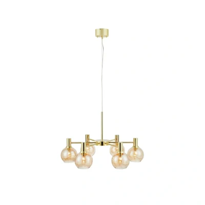 Markslöjd Ambra pendant light, brass/amber, glass, Ø 75 cm